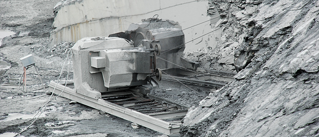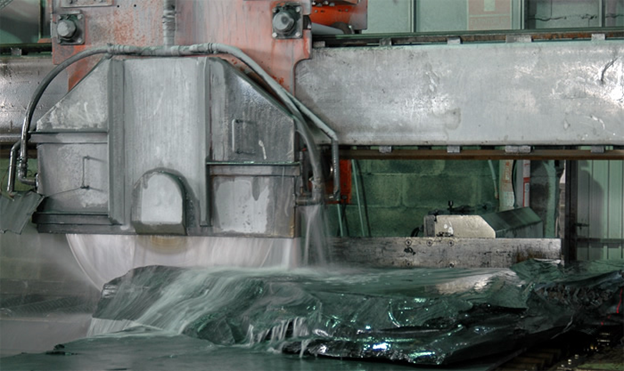 Shale rock is sawn into large flat plates with diamond beads on a steel cable. The machines are installed on rails which allow you to move them while maintaining an adequate length and tension steel cable, for efficient sawing of the block.