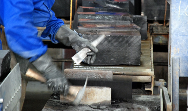 Then the smaller blocks are split manually by skilled artisans on a plate with a given thickness, one after the other.