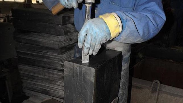 Blocks of slate are selected according to their quality and capacity on the part of the production team and cut into different sizes.