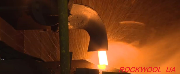 In production, the coke is used as fuel, during combustion it produces a high temperature of about 1400 - 1500 ° C. the Liquid rock mass resulting from the melting flows from the furnace and is drawn on the discs, rotating at a speed of several thousand revolutions per minute.