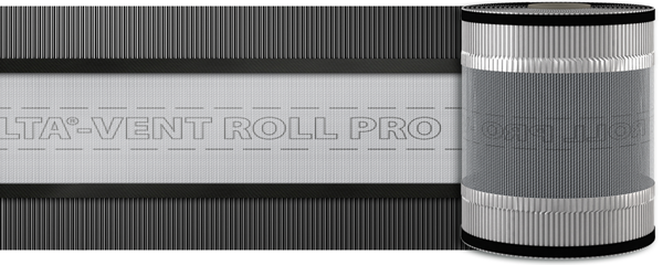 Инновационная вентиляционная лента конька Delta-Vent Roll Pro от компании Dorken (Германия), устанавливает новый стандарт безопасности в области защиты и вентиляции всего подкровельного пространства в районе конька и ребер кровельных скатов. Средняя часть Delta-Vent Roll Pro, состоит из очень высококачественной и прочной на разрыв алюминиевой проволочной сетки. Новый продукт компании Dorken устойчив не только к экстремальным погодным условиям, но и к коррозии.