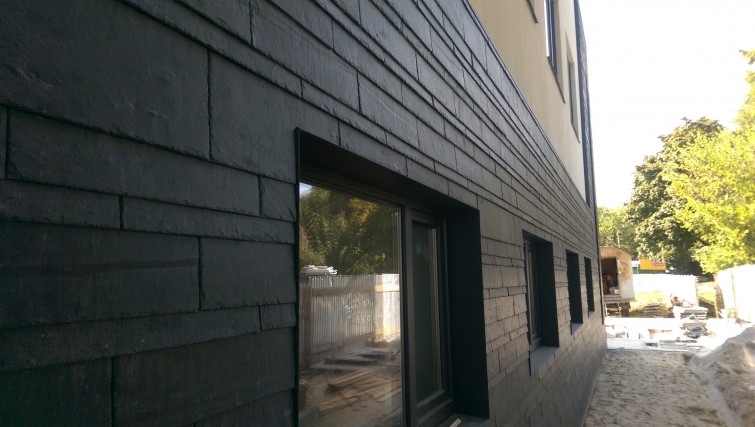 • Монтаж під конструкції вентильованого фасаду, а також весь монтаж сланцевої плитки виробляла покрівельна компанія з Харкова - ВіпКровля.