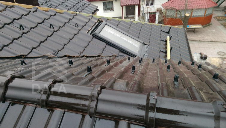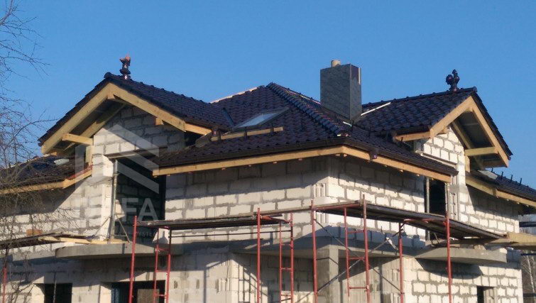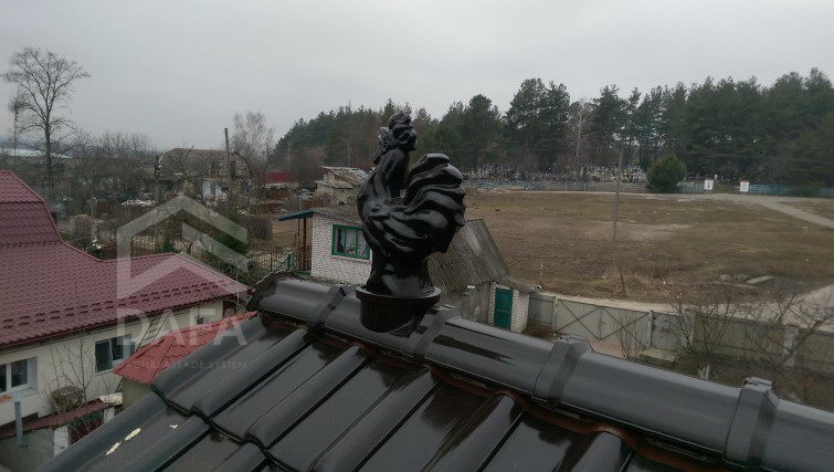 • Керамічні декоративні прикраси для покрівлі (лунатик і когут), були виконані в колір керамічної черепиці .