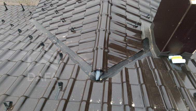 • Комплектуючі для монтажу керамічної черепиці (тримач бруса, кляммера, гребені свиску, крапельники і т.д.) - IVT (Німеччина), вентиляційна стрічка гребня Figaroll Plus (Німеччина), високоякісна і довговічна стрічка для обробки примикань Wakaflex (Німеччина)